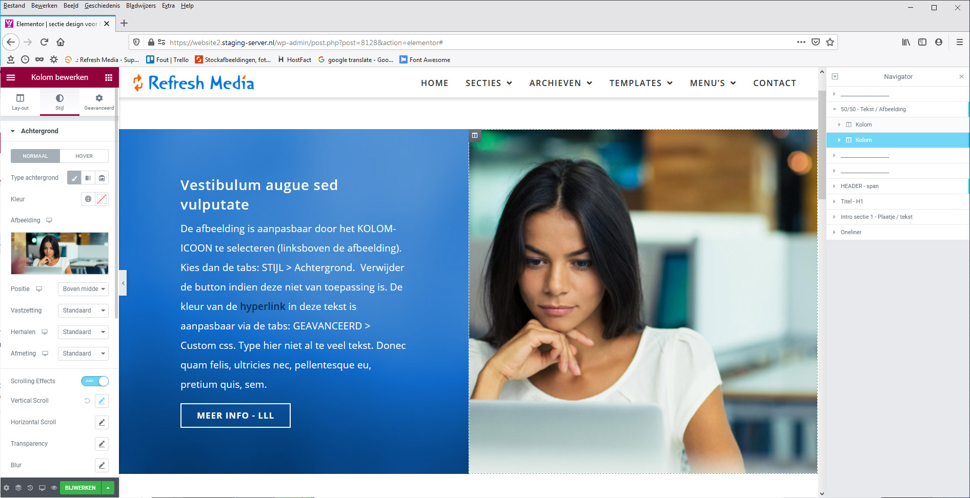 Klik aan de linkerkant op de tab STIJL. De afbeelding verschijnt. Klik op de afbeelding om een andere afbeelding te kiezen in de Media Bibliotheek.