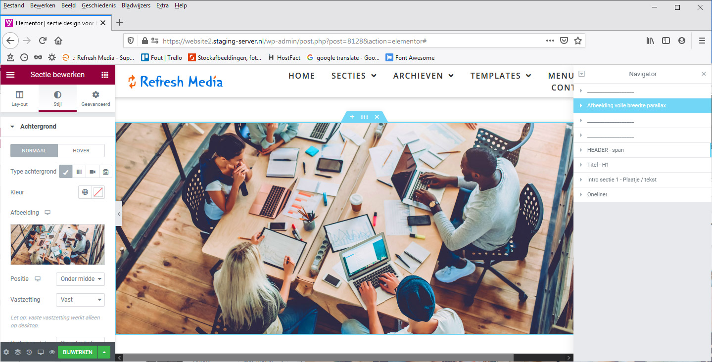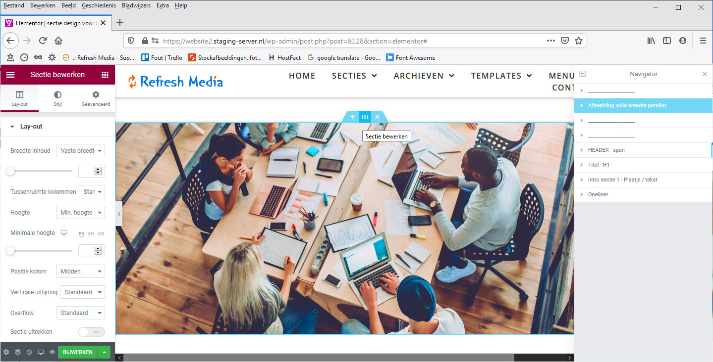 Klik boven de afbeelding op het blauwe sectie icoon met de 6 puntjes :::![]()