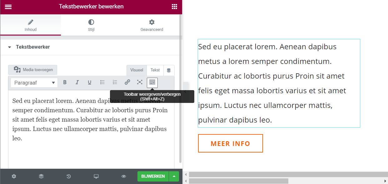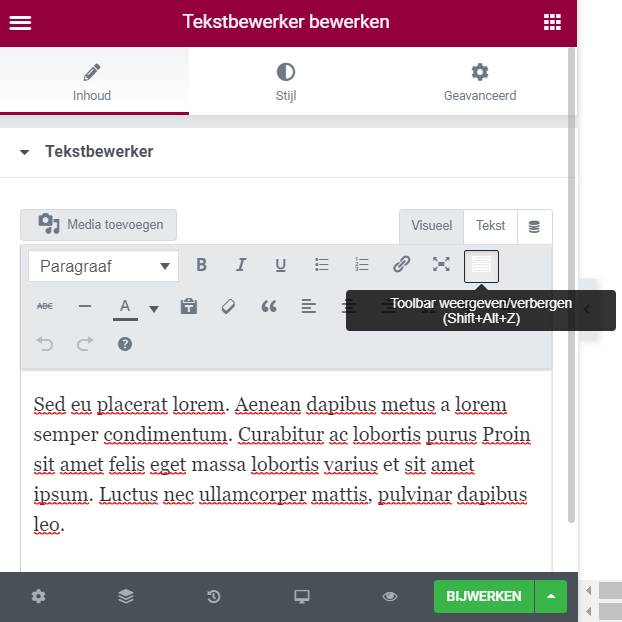 Klik op “Toolbar weergeven/verbergen” om alle opties te krijgen.