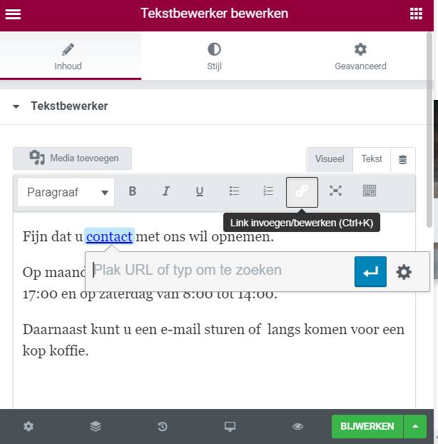 Ook is het mogelijk om een externe hyperlink te maken. Deze wordt geopend in een nieuw venster.