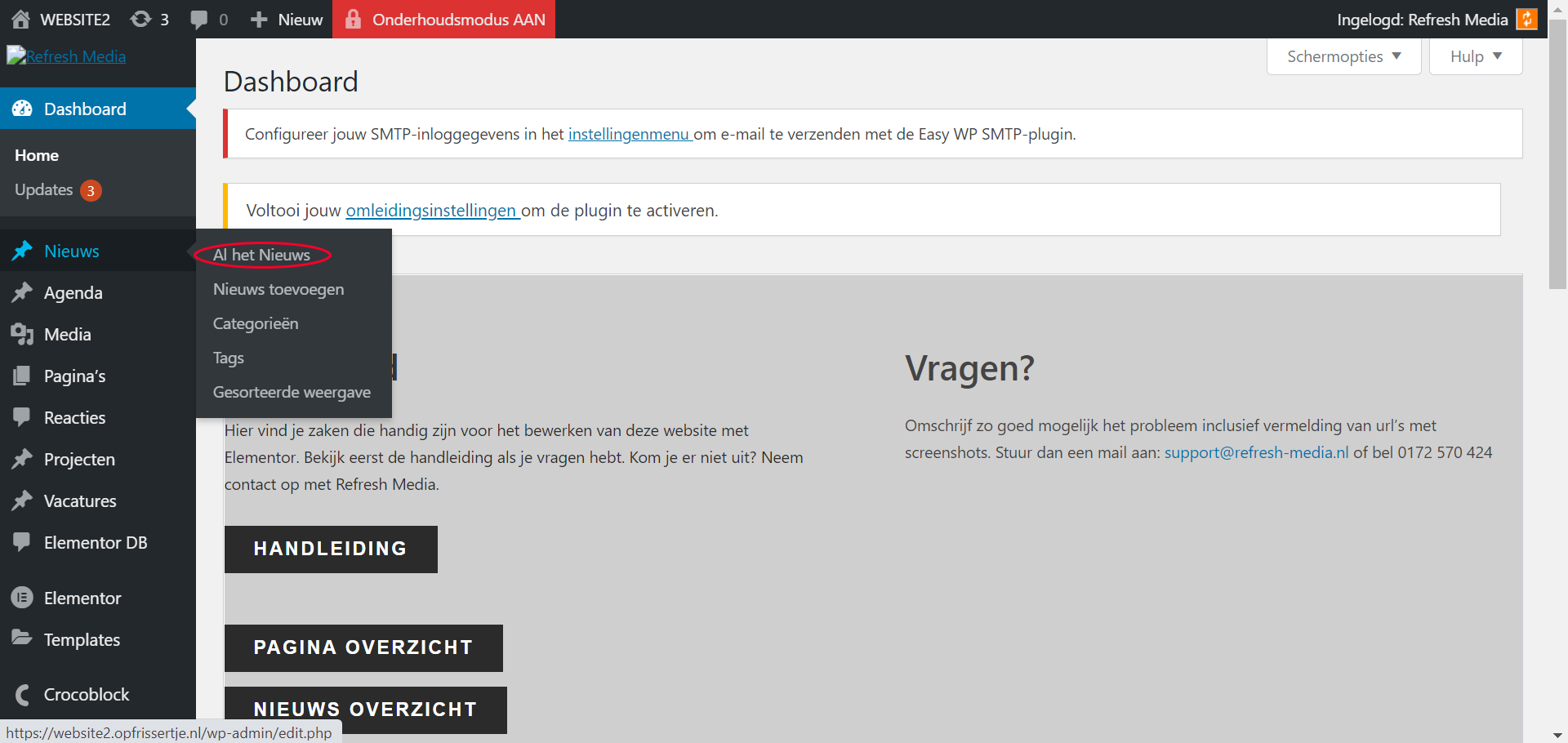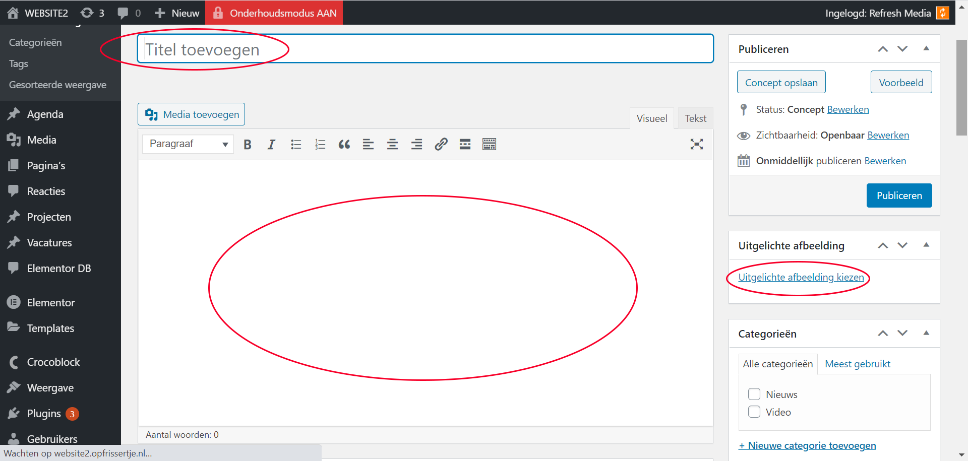 Via het dashboard is het eenvoudig om een nieuws bericht aan te maken.