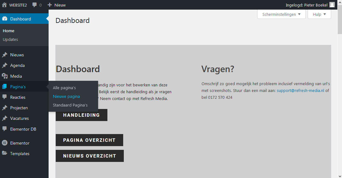 Ga naar het Dashboard en klik in het menu op Pagina’s > Nieuwe pagina