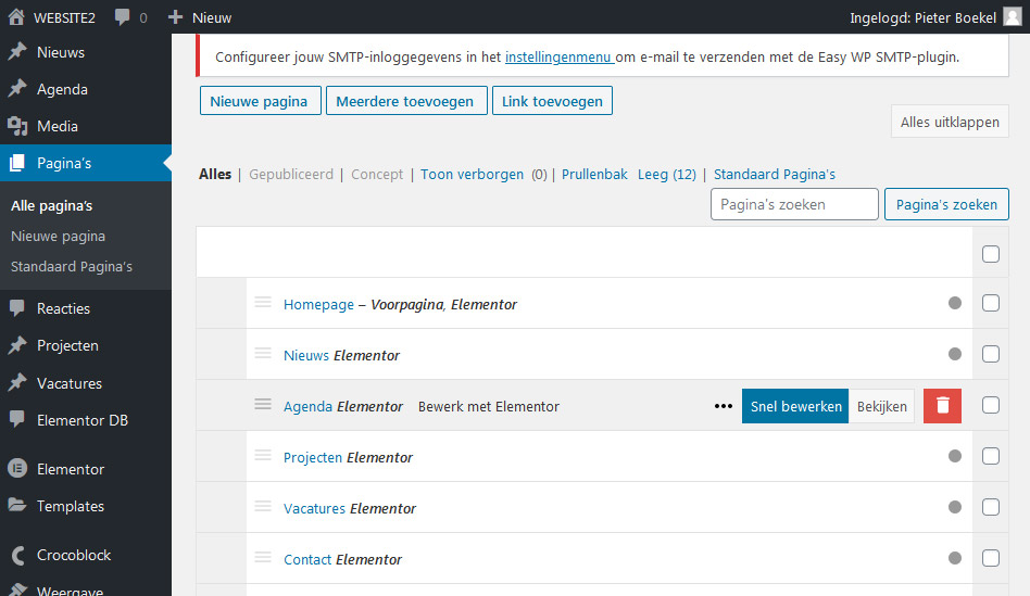 Beweeg met de muiscursor over een paginatitel naar keuze en kies: Snel bewerken.
