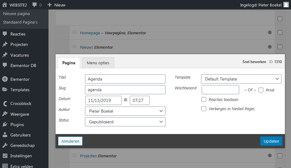 Ga naar het Dashboard en klik in het menu op Pagina’s > Alle pagina’s