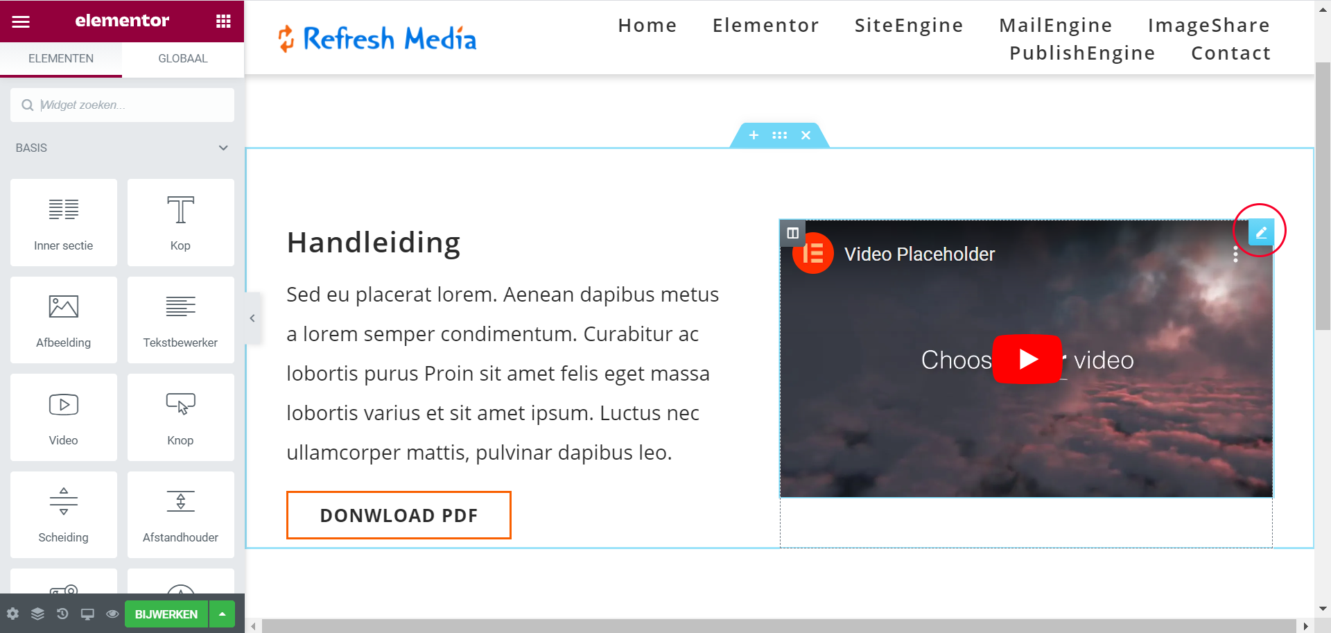 Open de pagina waar de video moet komen te staan. Klik op het edit icoontje recht boven de video.